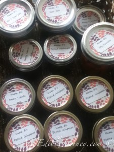 Oh, and what did I bring home? A lot. Crab apple Jelly, Coronation grape jelly, a delicious chili sauce, some fabulous hot sauce, pickled cherries (been wanting to make them for a long time), dried fennel, wine jelly, and an interesting green tomato and onion relish. Can’t wait to try everything. I’m already thinking about possible treats to make for the next canning swap!