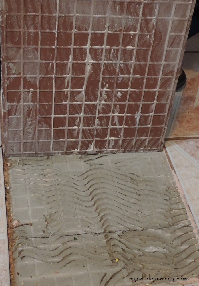 When we bought this house just over 5 years ago, we knew the kitchen needed major work. The tile floor was poorly laid. We suspect it was done not long before the house went on the market. How they thought it was an improvement is beyond me. It cracked underfoot and barely stuck to the underlay. We were holding it together with packing tape in some places.