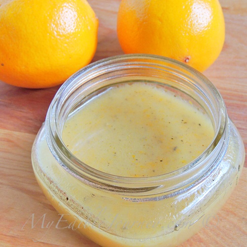 Obviously you can substitute any sweetener that you like in this. A floral honey would complement the delicate notes in the Meyer lemons quite nicely. And don’t limit this dressing to salads. If you freeze the juice and zest, you could serve this over summer grilled zucchini, or asparagus or green beans when they’re in season. Ooh, I may just treat us to some asparagus and do that for Easter.
