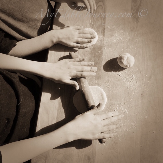The little rolling pin is very obviously hand made, presumably by my great-great Grandfather. It is tapered, and quite uneven. It takes a bit to get used to, but I like it. It has helped make things that I’m sure my grandmother had never even heard of, like naan bread. And I love watching the kids use it. There is a legacy there, absolutely. I think that’s why Nana wanted so much for me to have it. I’m sad that she didn’t live to meet her great grandchildren, but I know that she would be so happy to see that little rolling pin in their hands.