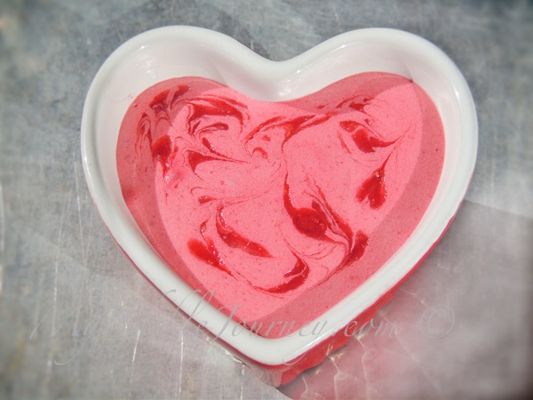 I considered making something decadently chocolate. There is certainly no shortage of recipes around (Pinterest has been flooded with them in the past week or two). But I had frozen raspberries just begging to be used, and a pink dessert just seemed to shout “Valentine’s Day!” So a very simple raspberry mousse was created. And I do mean simple. This dessert comes together with minimal effort, and the result is a bright tasting, delicious dessert.