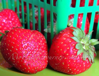 It got hot this week.  Like, for a day it got really hot.  And humid.  And uncomfortable.  Partly because we still haven’t turned on the air conditioning yet.  But that’s okay.  Because the heat did something else.  It spurred the local early strawberries to ripen.  And ripen they did!  It’s strawberry season!Strawberries | My Edible JourneyI love strawberries.  They are my favourite fruit.  Well, until cherries.  And then peaches.  Then those first, amazing, crisp apples…. Oh, and I forgot raspberries (which will be expensive this year, as our abundant patch has mysteriously up and died).  Okay, I love fruit in general.  But there really is something magical about these first strawberries.  They are smaller, redder and more floral than the ones that will follow them (which are still wonderful).  They practically beg me to buy more than we can reasonably eat before they pass their prime.